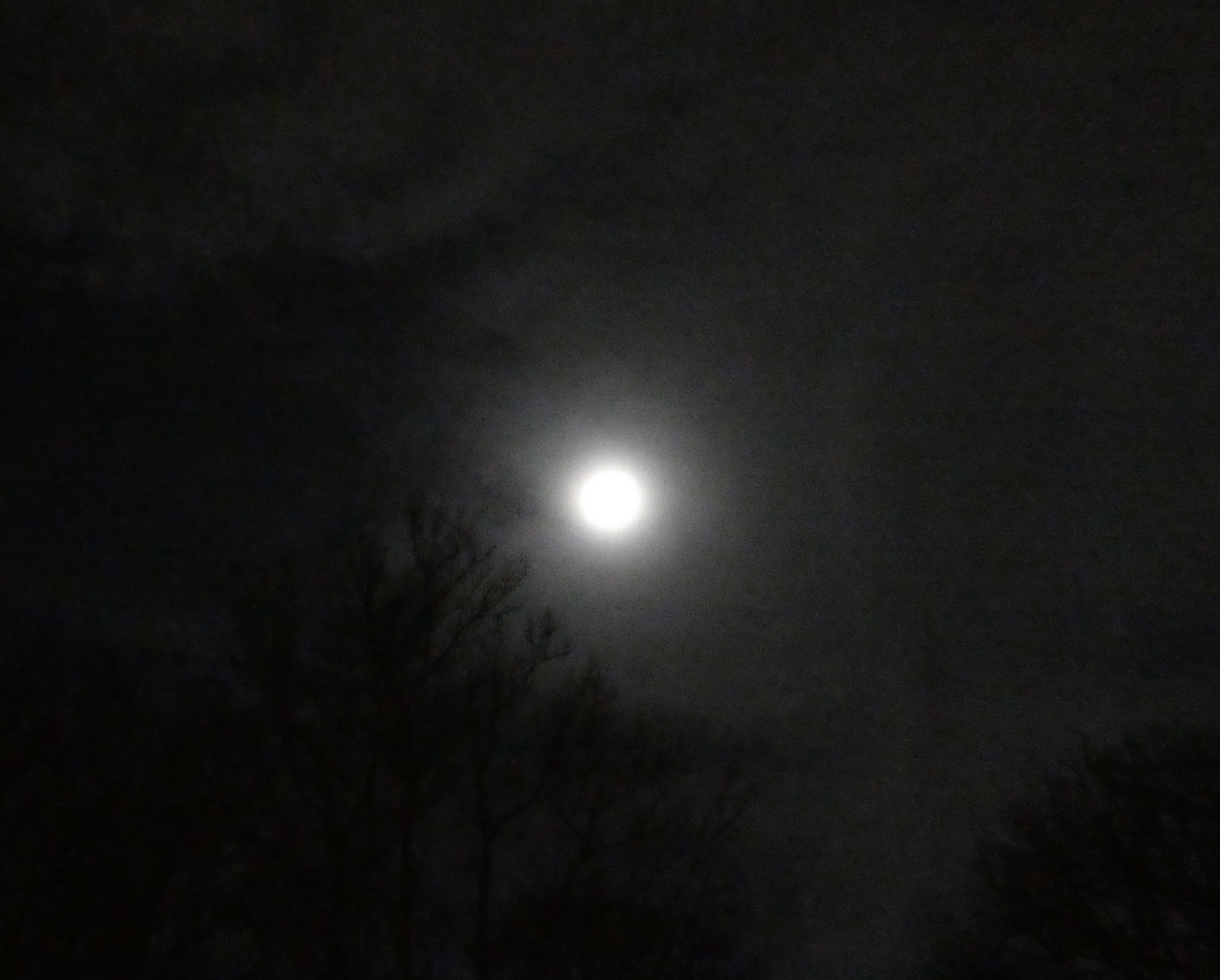 Full moon this morning, and blessedly cool outside, relatively speaking. We had no power from Saturday afternoon, when a 90-mile-an-hour wind, they say it was a derecho, blew through and took out power to thousands, until mid-day today. Fortunately the 99-110 degree temps we can see in St. Louis in July stayed at bay, but it was hot inside the house, so the porch has been our hangout for a few days. We watched the wind on Saturday, just watching it whip by I felt like Dorothy in The Wizard of Oz.