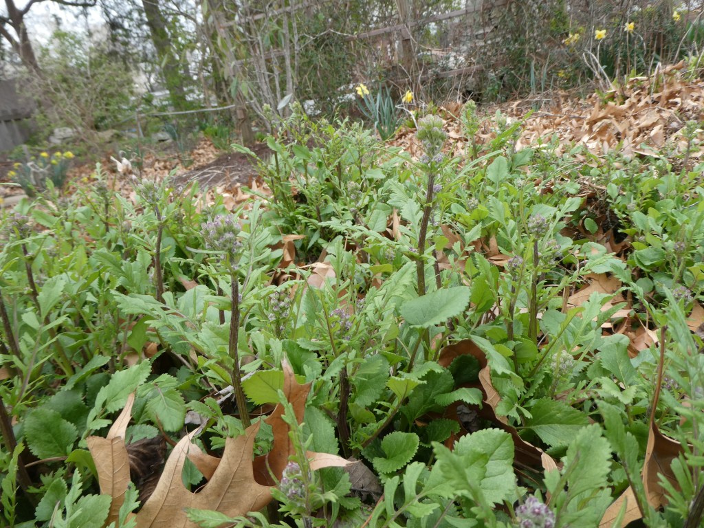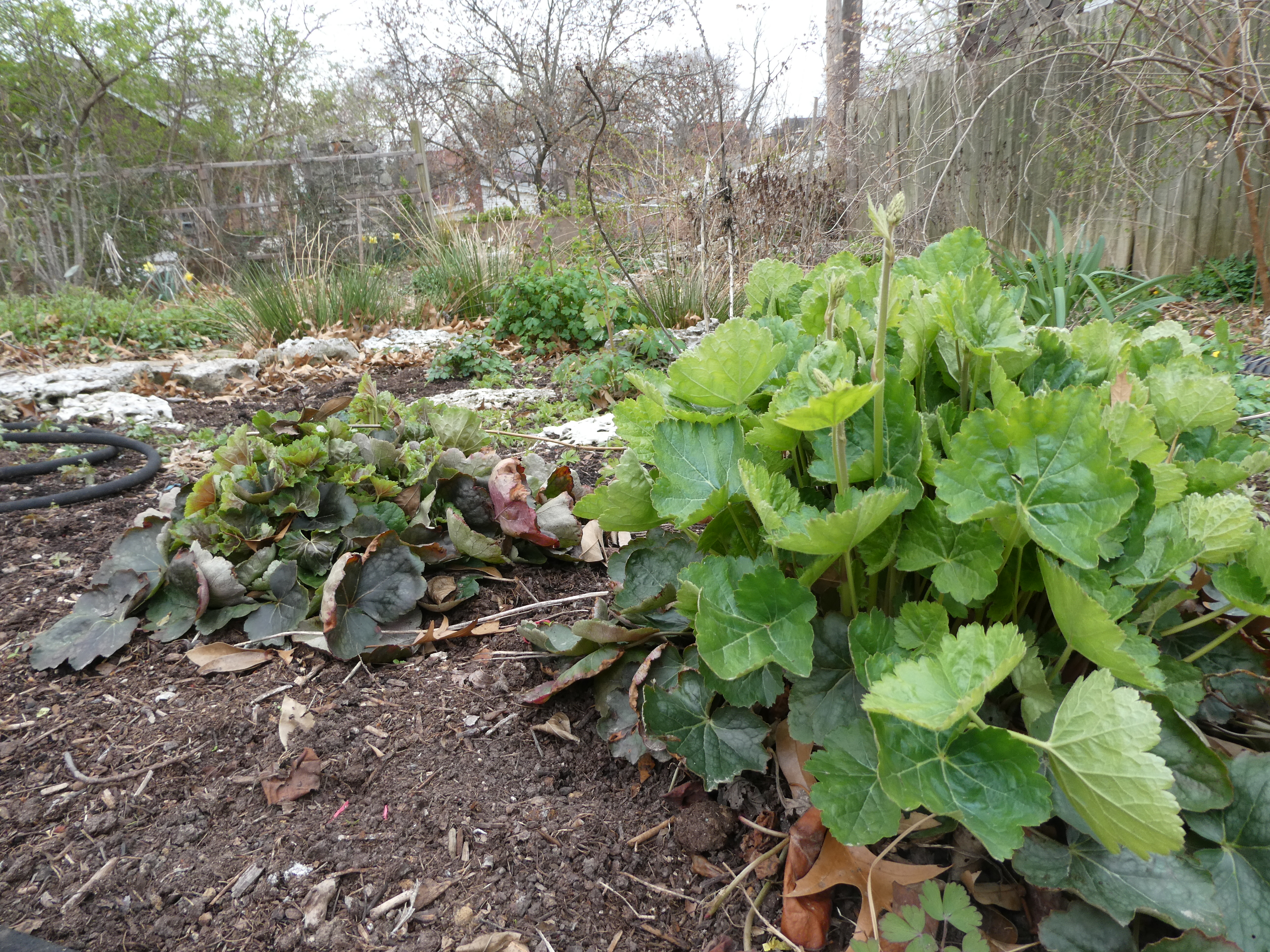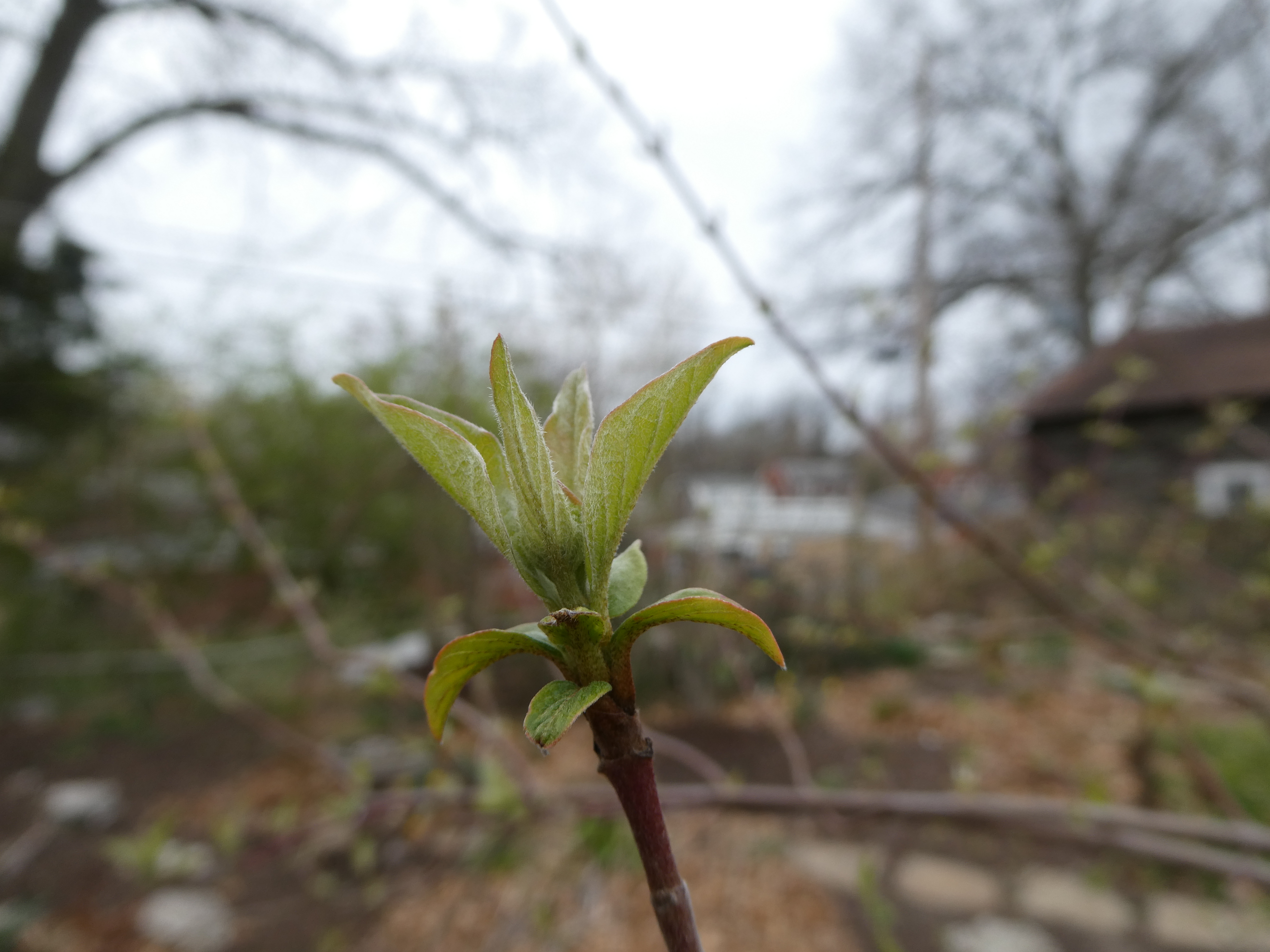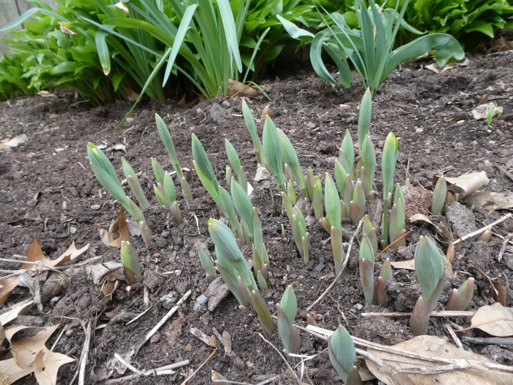 Everything seems early this year, but we yaw from hot to cold to hot to cold- We finally started raking up some leaves today, after leaving them on the ground all winter to protect plants and whatever insects were overwintering in them. After piling the front yard leaves on the compost we soaked them down with the soaker hose. Tremendously dry they were. I used to find worms under the leaves on the driveway in the spring, but not this year. Been too dry. Will get to the back yard leaves next week after the pile has diminished a bit-