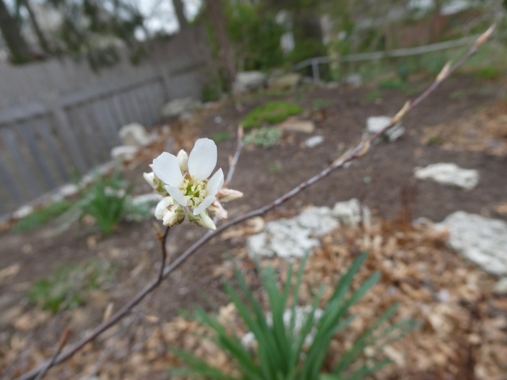 Golden currantGeorgia blue speedwellJacob’s ladderTradescantiaGrey dogwoodThe serviceberry (Amelanchier arborea) we planted several years ago (5-7?) that has had a hard getting established after rabbits ate its young shoots, limbs fell on it etv, is blooming for the very first time this year. I was elated when I saw it had flower buds.Round leaved ragwort (groundsel)getting ready to bloomgingerColumbineCelandine poppyBellwortLenten roseHeuchera