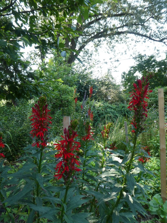 View from the back stepsCardinal flower in the rain garden, a favorite of the hummingbird