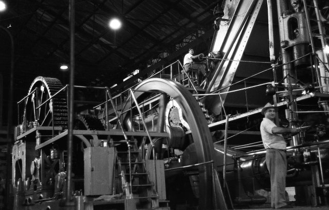 My brother compiled photos and negatives of my father’s, taken throughout his lifetime, and gave them to us for Christmas this year. Here are two striking photos, one of men working in the sugar cane fields, the second of men maintaining a sugar cane press in Cuba, circa 1957.
