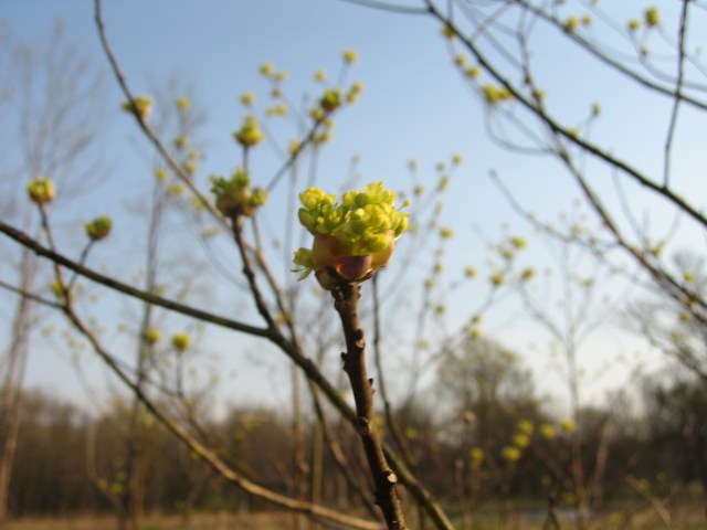 Sassafras (Sassafras albidum, Lauraceae, avocado family) I love the unfolding of the sassafras flowers and the yellow-gold color
