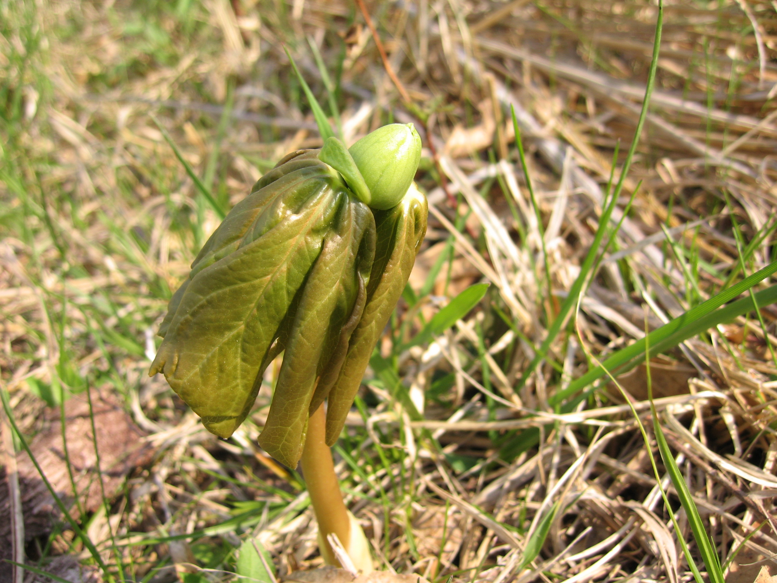 Mayapple, unfurling (aka mandrake, Podophyllum peltatum, Berberidaceae, Barberry family)