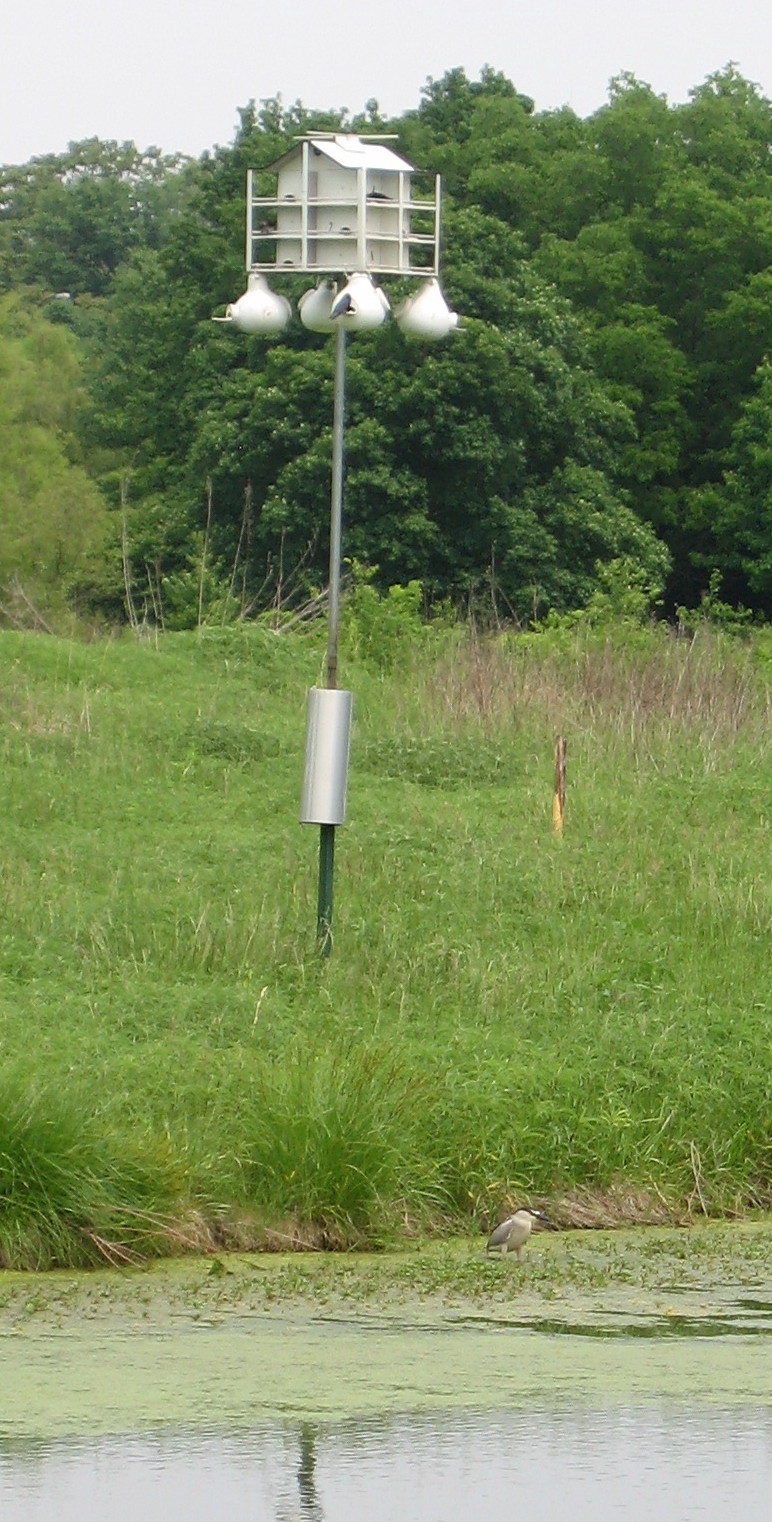 Black crowned night heron next to Martin house
