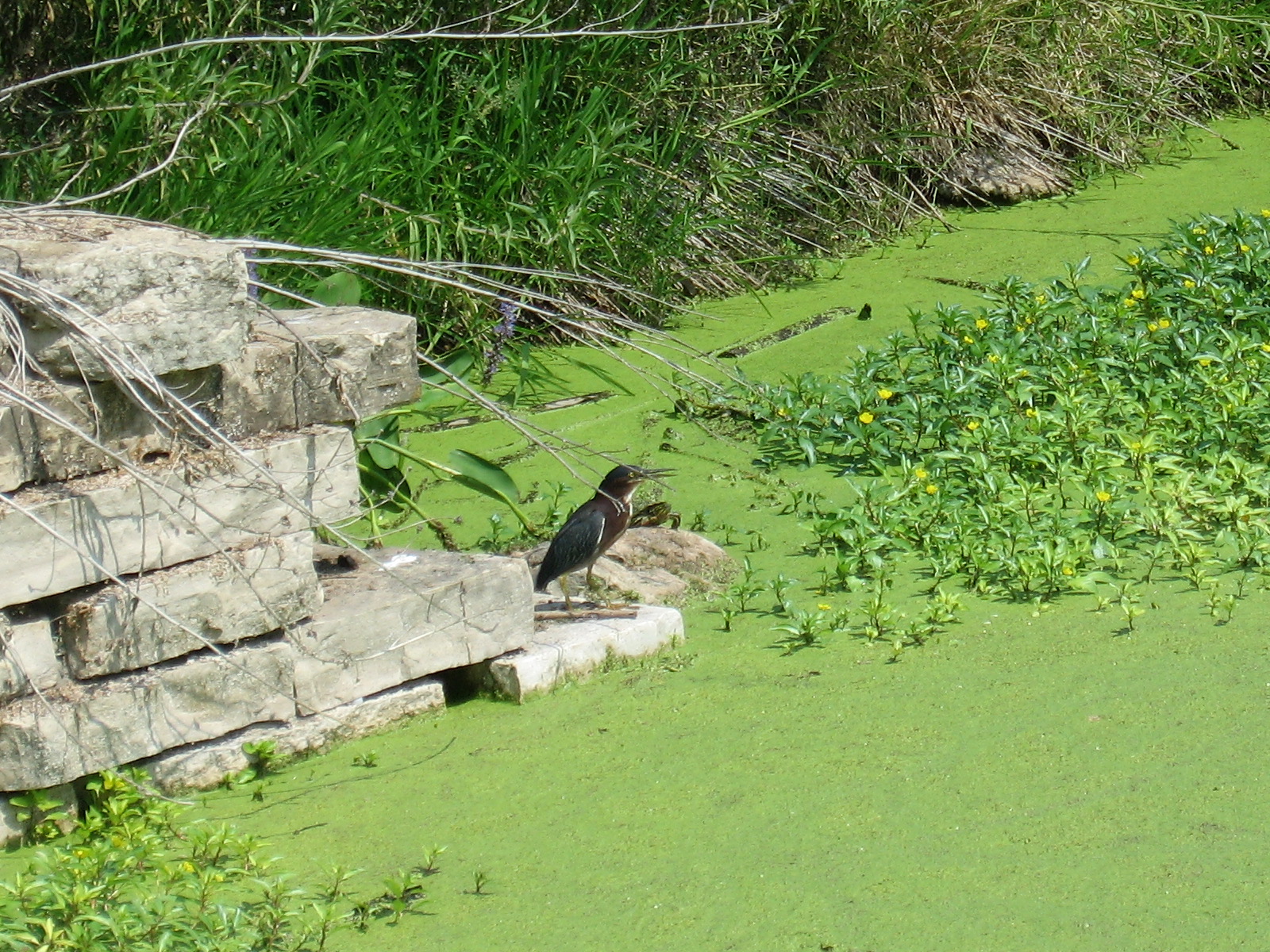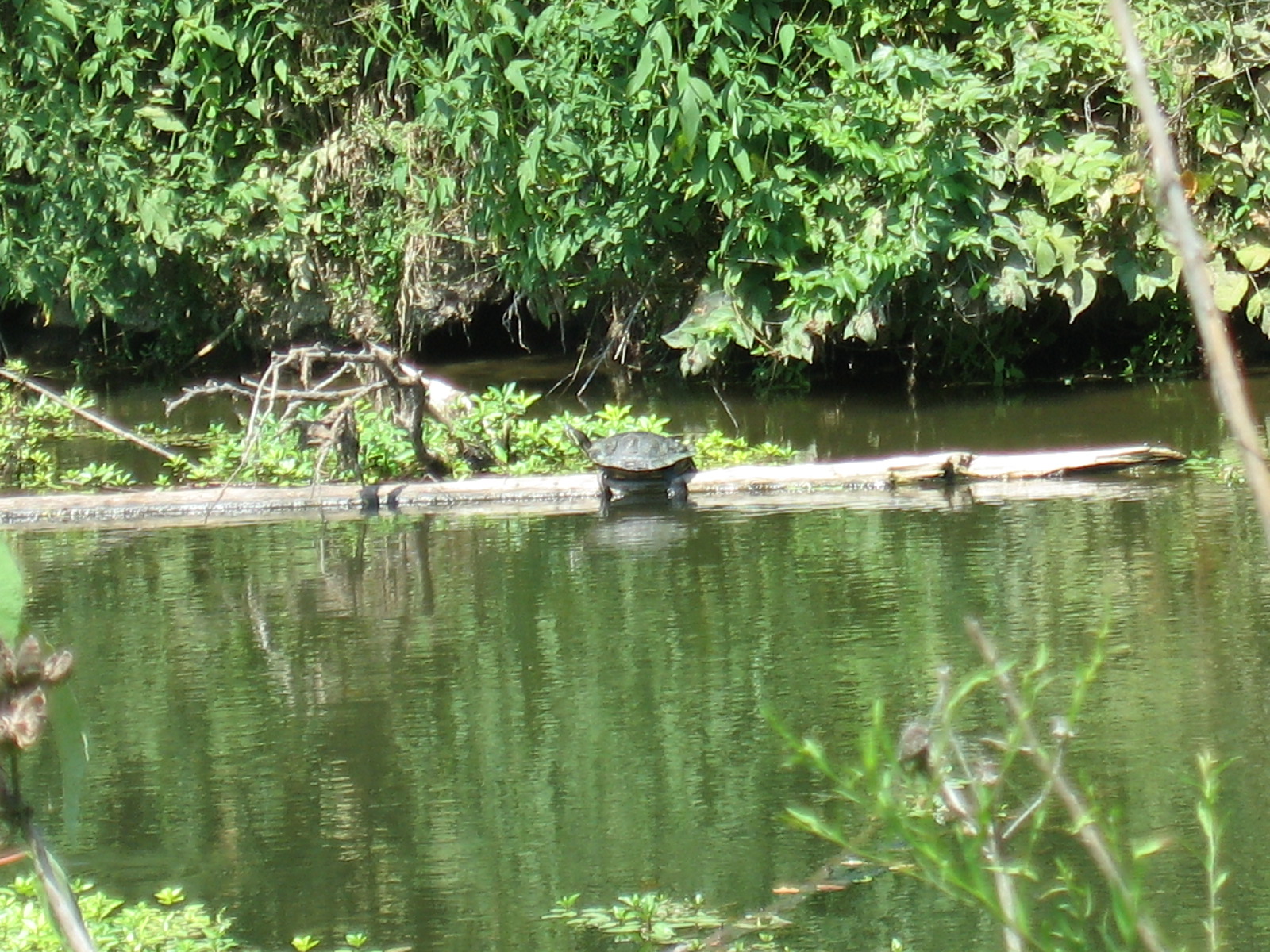 Took a hot, mid-day walk today, again to clear my head. No one out in the heat, much. The ground is sere, the trees dropping leaves early- this reminds me, today, of a woman I roomed with once, a tall, very thin dancer, whose hair all fell out when she was pregnant, her body opting to feed with scant resources the new life inside her instead of the older one. The tree is much the same, dropping the temporary to sustain the future. If only legislators could adopt a similar strategy- I passed a man fishing, a crumpled Stag beer can on the ground behind him. A few critters- turtles, green heron, cicada buzzing in a river birch. Earthquake near DC yesterday- a friend there said another friend proposed an End Times party, all in fun, but sometimes one wonders-