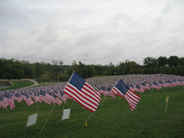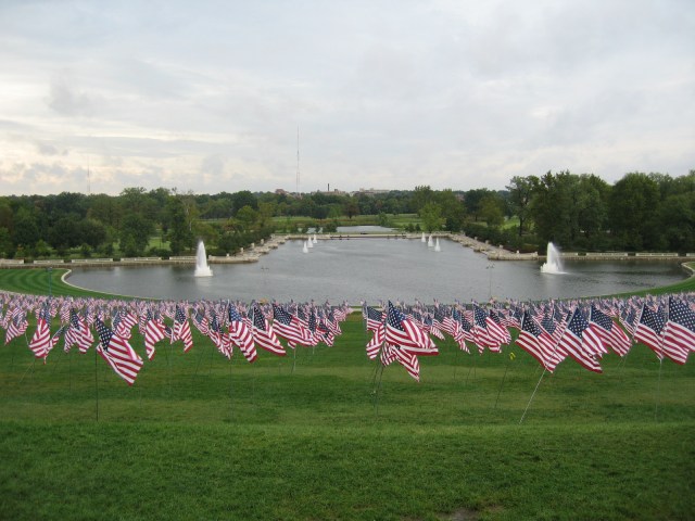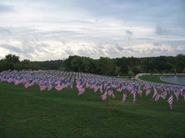 An exhibit on Art Hill to commemorate the lives lost on 9/11/2001. I avoided all the commentary and commemoration last week, but this caught my eye (how could one help it!) as I drove home this evening.