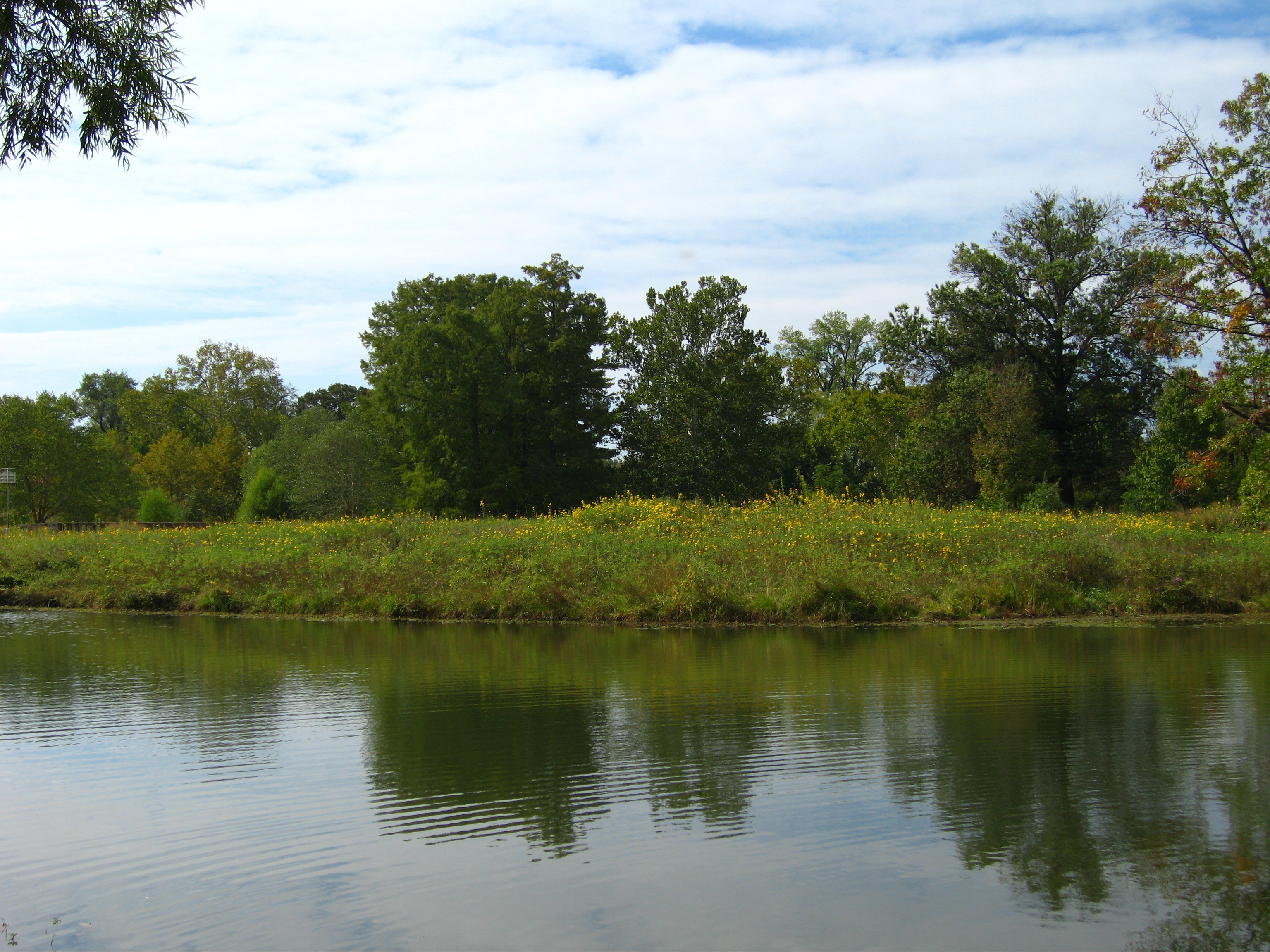 Just took a walk to clear my head and was happy to see that the brown desolation of the summer drought has given way to fall green, and there are even flowers where there were none in the summer, better late than never. Saw large and small turtles sunning, kingfisher, green heron, coot. In a sweetgum tree outside our offices is a squirrel’s nest containing young. I know this because yesterday there was a very recently dead young squirrel on the sidewalk under the nest, with a puncture mark through his skull just behind the eyes. I theorize a hawk or a peregrine falcon plucked him out of the nest and dropped him by mistake. Maybe he was startled, or a young and inexperienced hunter. Anyway, I moved poor squirrel-brother off the sidewalk under some bushes and covered him up with mulch.