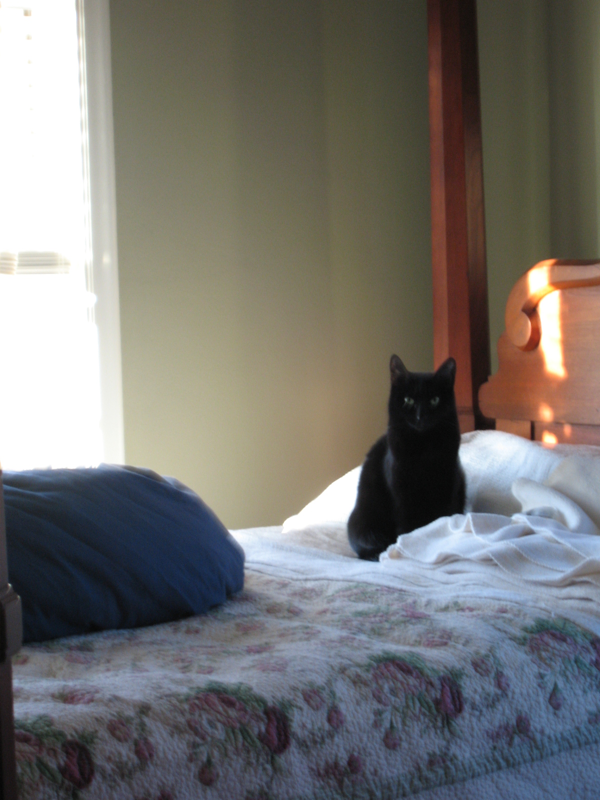 There have been big flocks of blackbirds moving through the park, mostly grackles but redwings among them. Here are some I saw this morning: And Britches at home on Thursday morning. She looks alot like her mother these days.