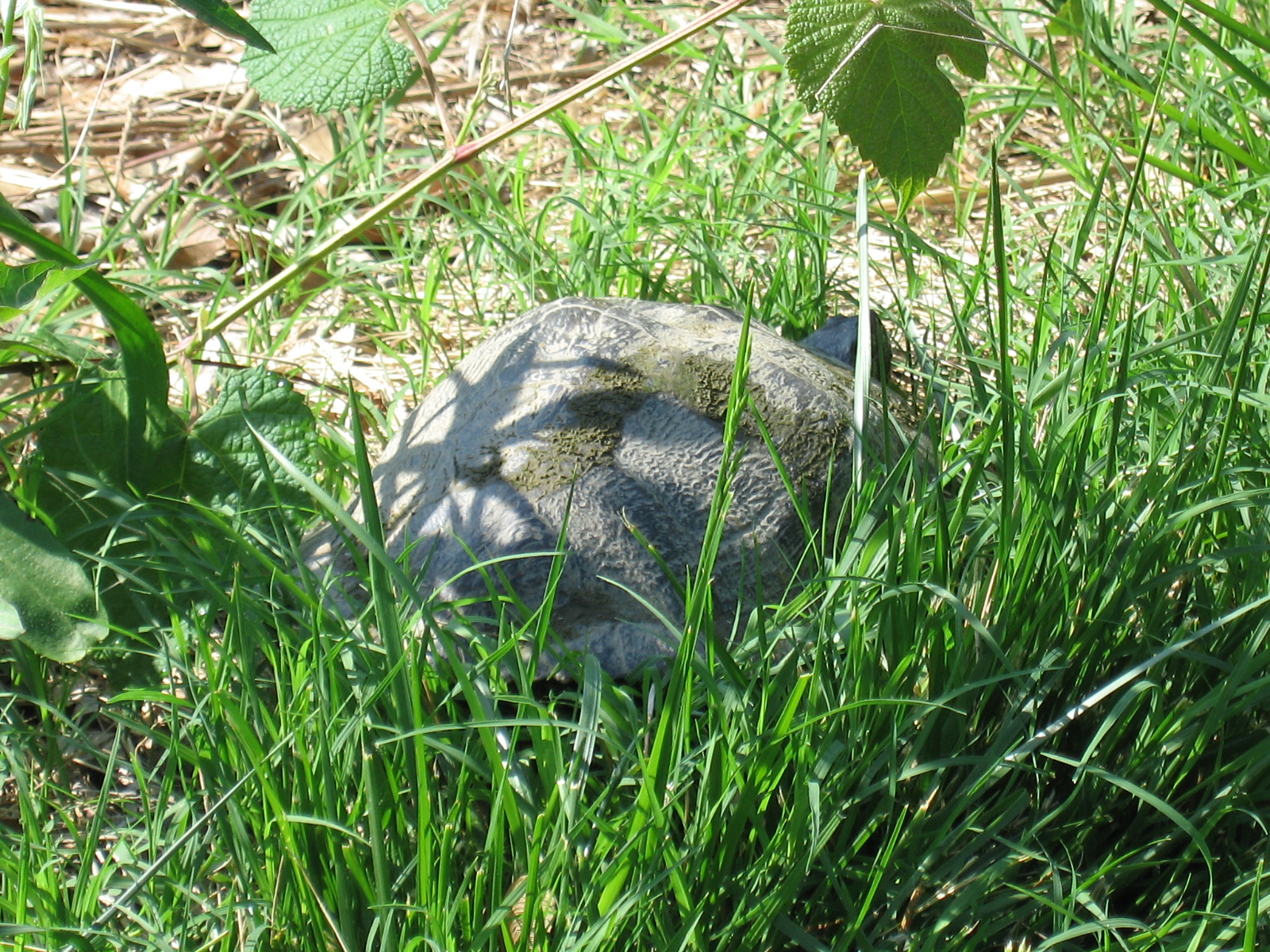 Funny that I should’ve mentioned turtles just 2 days ago. This morning I am later than usual to work because I spent about half an hour with a painted turtle in the park. I spotted her balanced on the ledge of the high curb which edges the road below art hill as I drove by. I pulled over and walked back and watched her awhile to determine which way she was headed. It looked as if she had recently emerged from the pond behind her because her shell was still damp in a couple of places. She startled a bit every time a car went by. You can’t tell from the photo but her shell was about 12 inches long. When I figured her intended path was to cross that road I picked her up and carried her over to the other side, past art basin and to the stream on the far side, away from traffic, where I put her in a patch of tall weeds near the water but still high enough on the bank that if her intention had been to lay eggs she’d be near a good spot. I backed off and stood and watched her for maybe 10-15 minutes while she put her head back out of her shell and sniffed around, surveying the area, getting her bearings. On the opposite bank the good folks of Forest Park Forever were drilling holes in the soil with an auger and the 2-cycle engine was noisy, but not as bad as car traffic. Finally she moved, went down the bank and into the water. I imagine her there now, in peaceful quiet, we in our busy world here. Not quite as busy for me at the moment, one source of mental clutter is gone for awhile; I deactivated my Facebook account and I do not miss it.