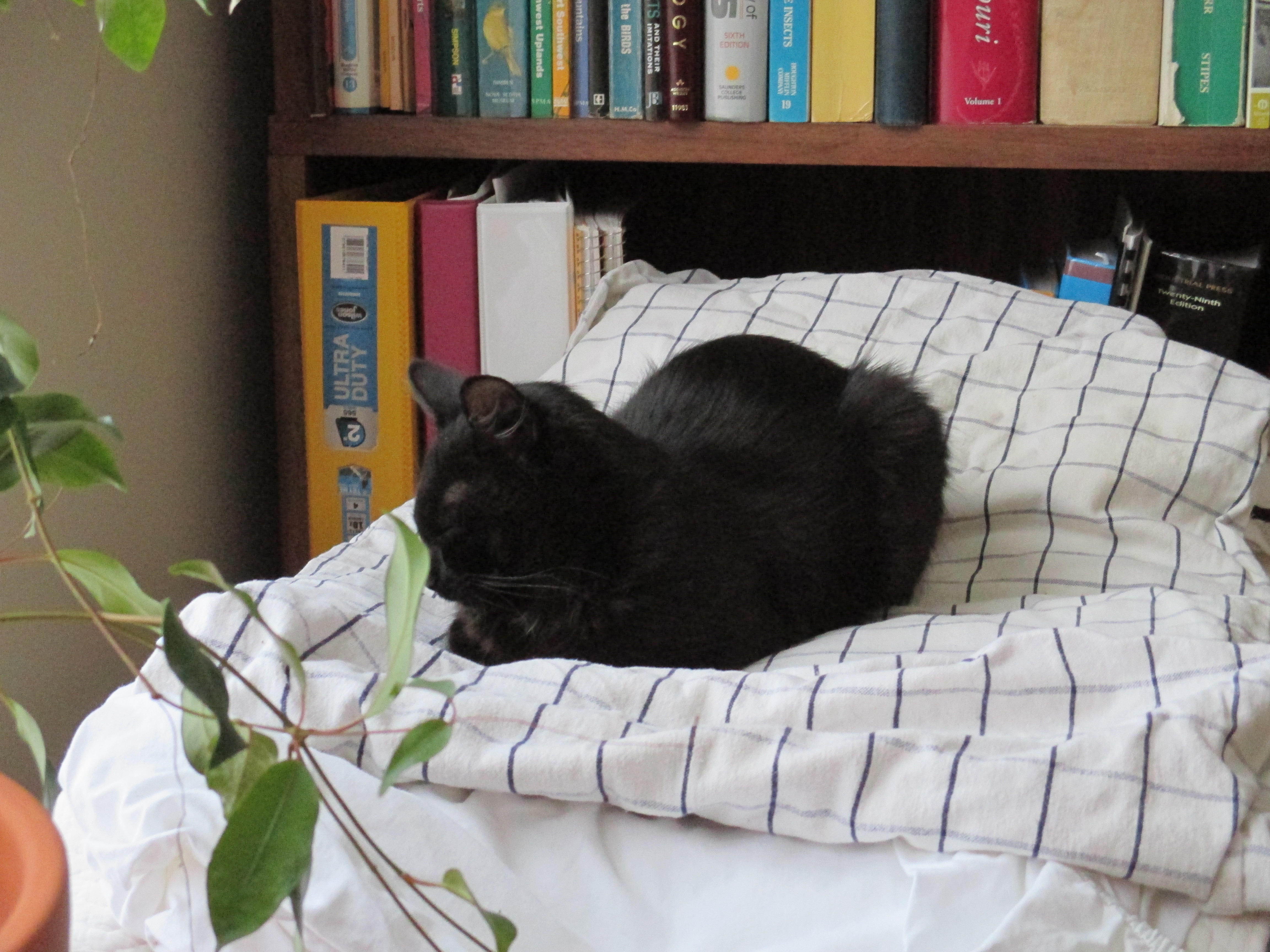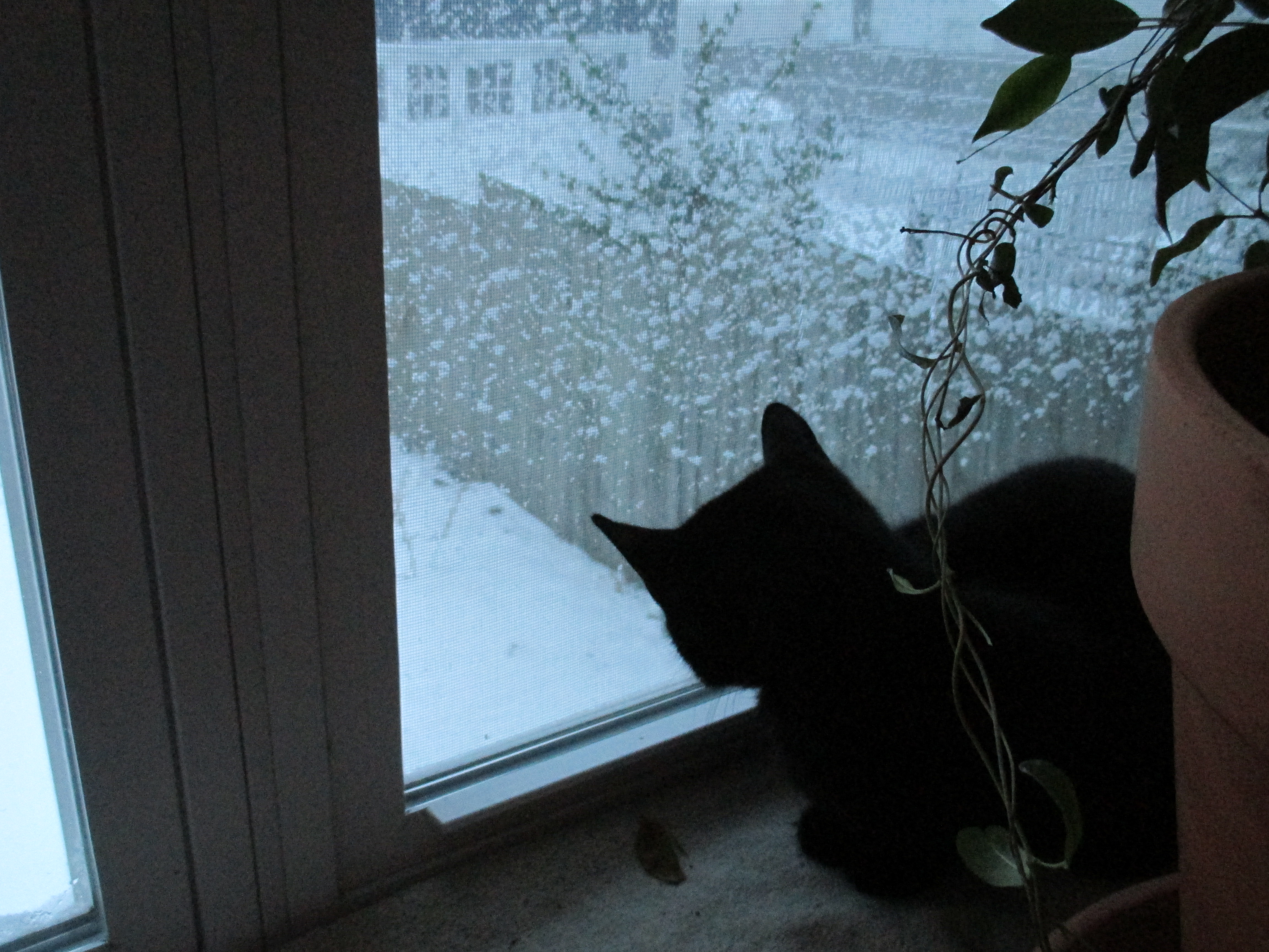 Dennis puts out bird seed, 7:30 Sunday morning, and Kitten Britches and Ishmael take up their posts at the window