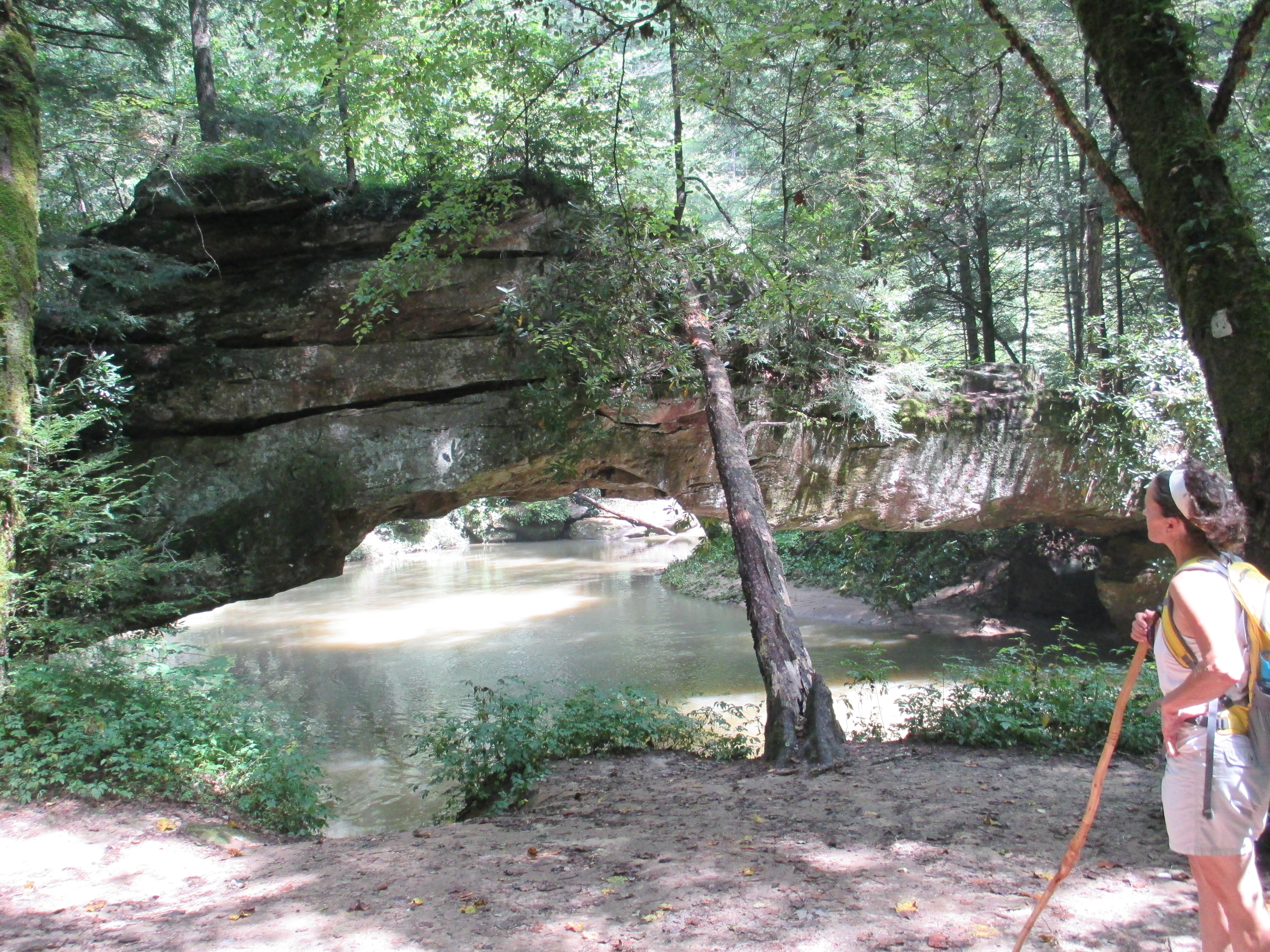 and from there to the Red River Gorge where we hiked for abot 4 hours, we figure about 12 miles up and down the mountains and gorges. Liz wore me out- she hiked the Grand Canyon a couple years back. It is beautiful, and so humid from the rain that mushrooms were popping up everywhere. Fall is in the air .