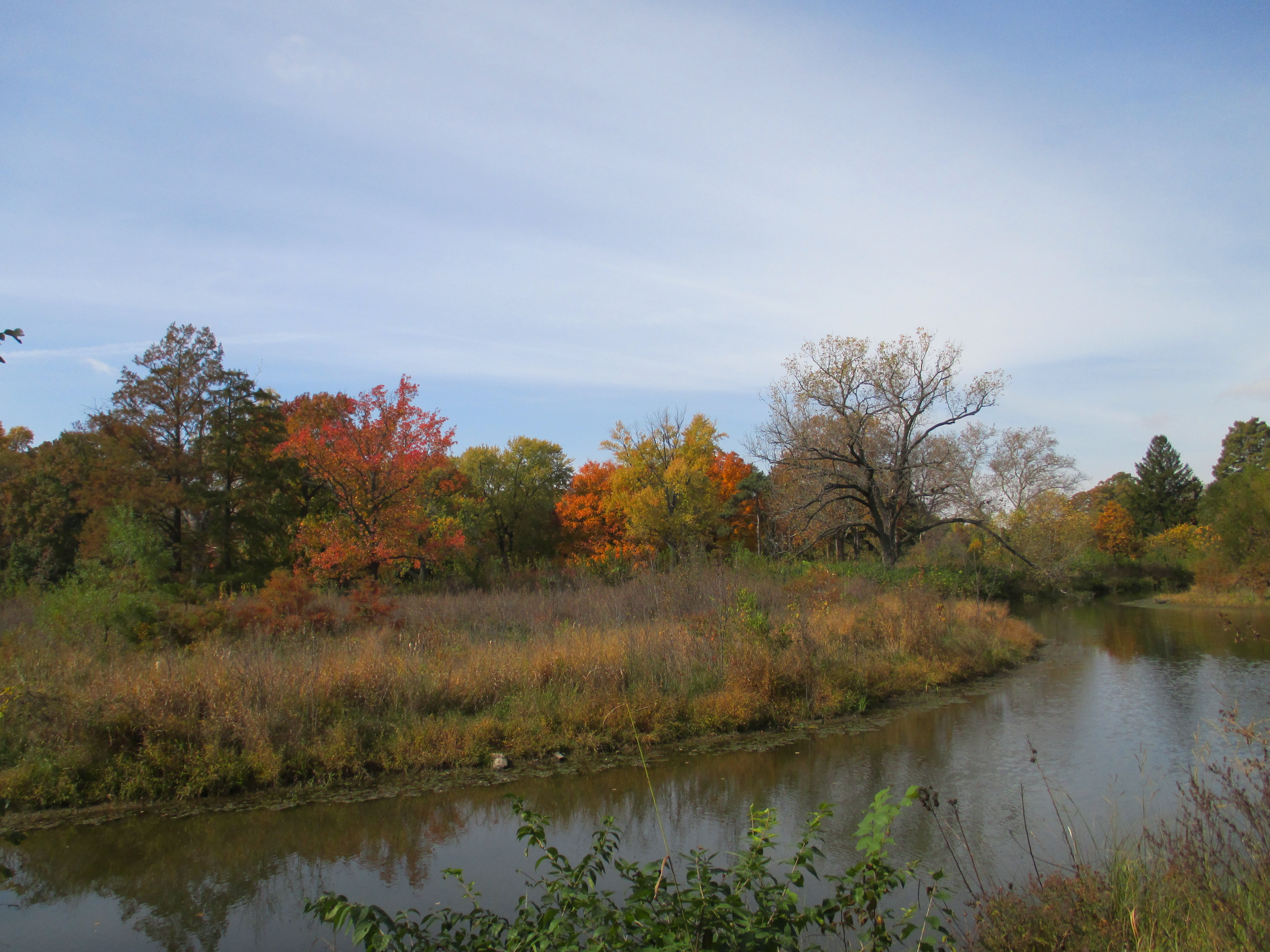And fall colors, a great blue heron in the cottonwood tree overhanging the river, Witchhazel blossoms (Hammamelis virginiana).