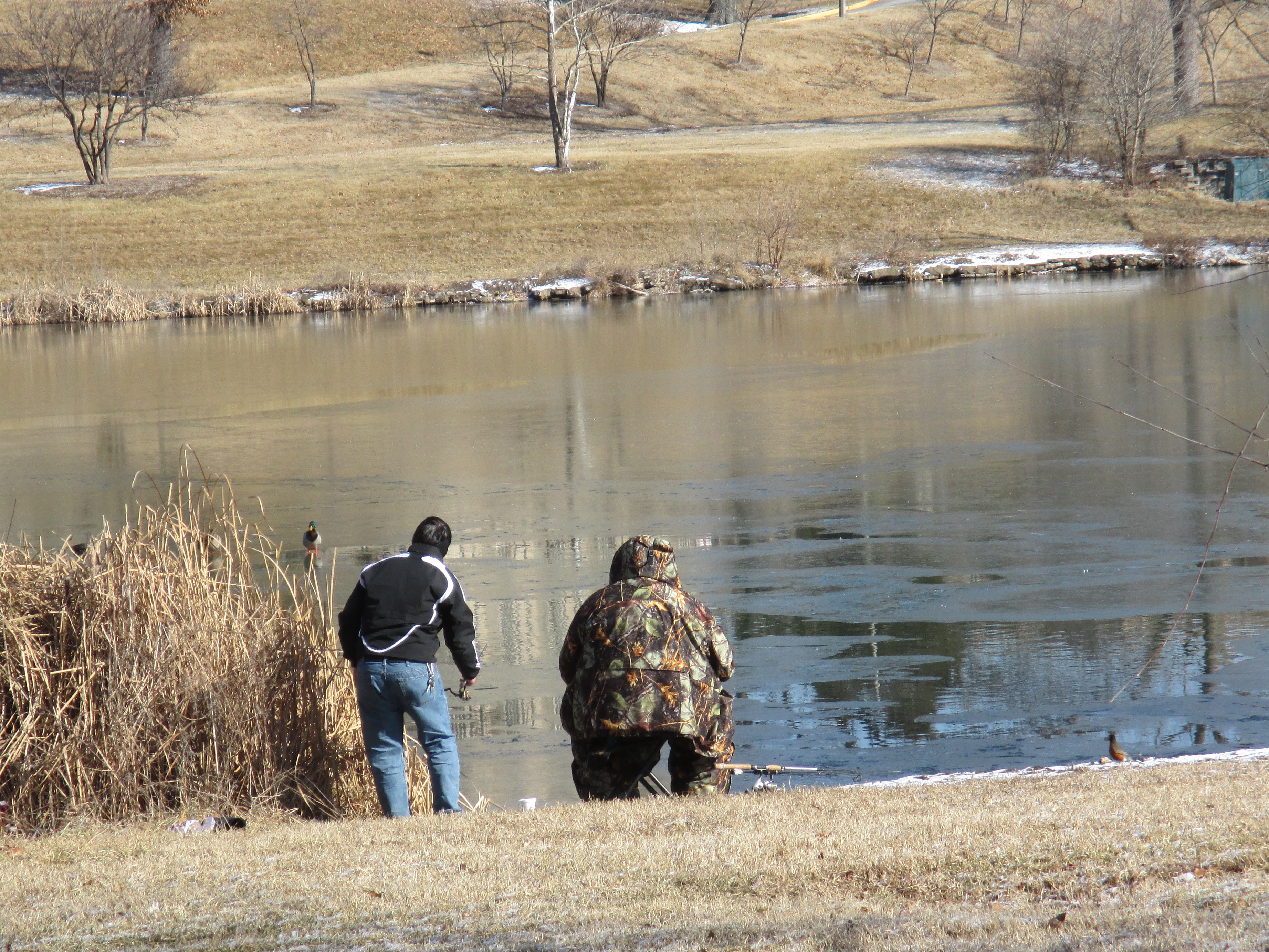On a walk later, at work, I saw fishermen harvesting trout out of Jefferson Lake- the first of February they’re allowed to keep them instead of throwing them back in. Also heard a kingfisher chattering down the river. And tonight as I left work just before 6, the sky was red with sunset and thousands of crows were flying in to roost in trees near the hospital and across Kingshighway in the park. Thousands and thousands, mostly silent, they looked like silent black graffiti in the wind.