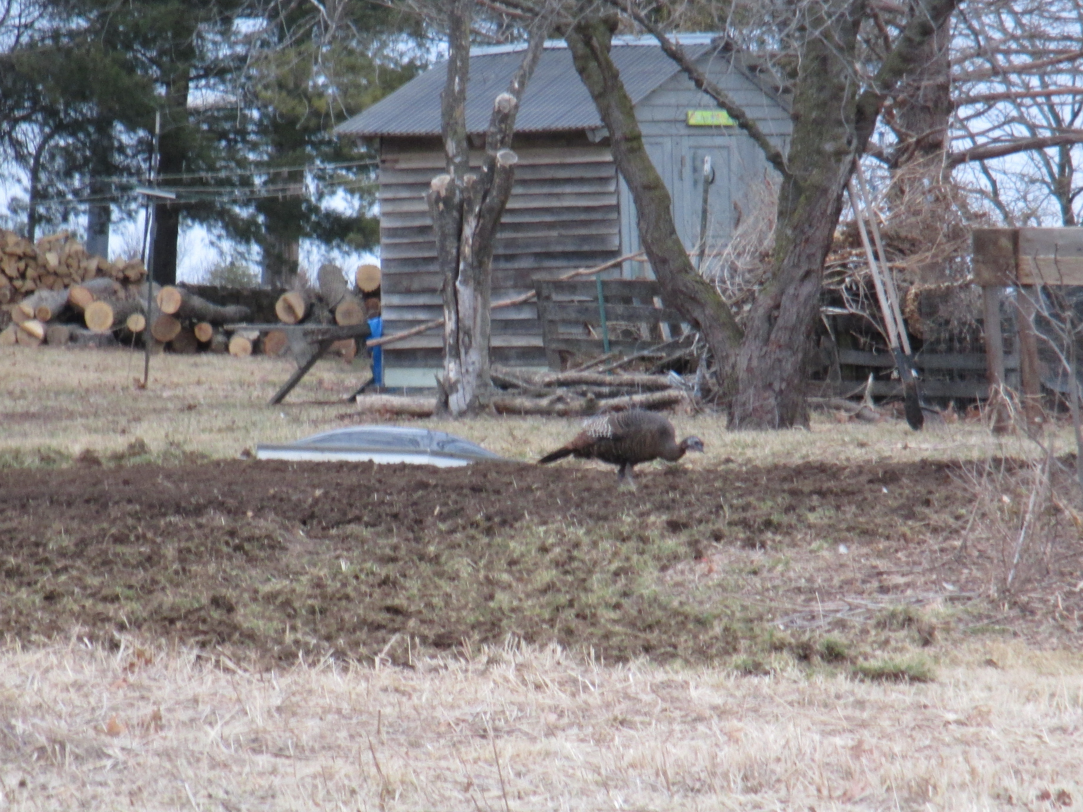 When we got to the arboretum this morning the first thing we saw was the tame wild turkey from the neighboring farm. Mary Isabelle was unadorned as of yet.