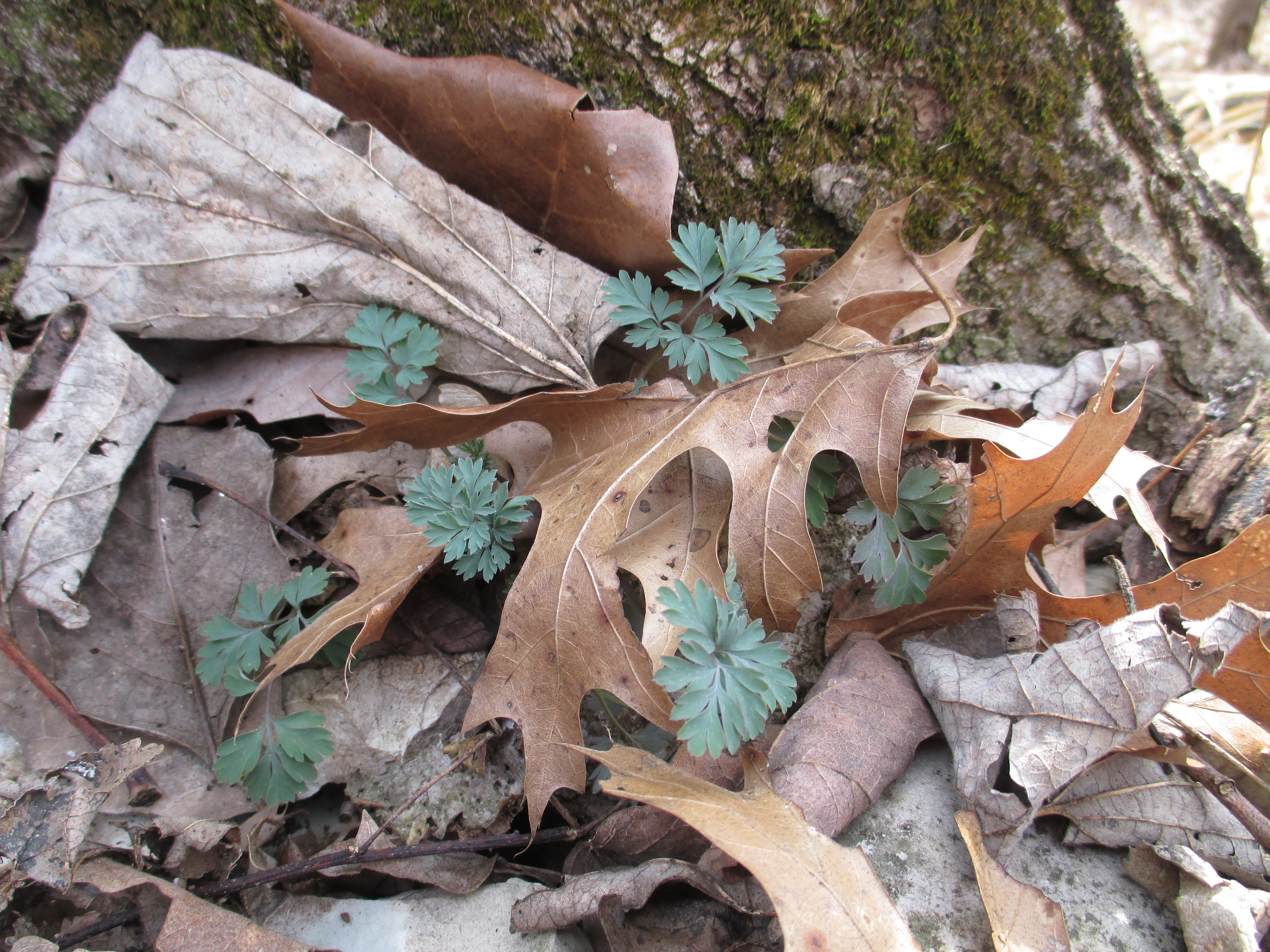 Yesterday afternoon I went to the local botanical garden with a friend to walk in the sun on the unusally warm February 7 day. We saw honeybees out gathering pollen from the few plants that were blooming, including a witchazel (Hamamelis intermedia). Also lots of daffodil and tulip bulbs coming up. And this morning early Dennis and I went out to the arboretum to get a baseline take on spring happenings. There is so much energy just under the earth you can almost feel it, so much going on, plants coiled just out of sight, waiting to spring forth. We found, on the south-facing hillsides and planes in the woods, some early indications of the earliest spring flowers. Here is a sampling.