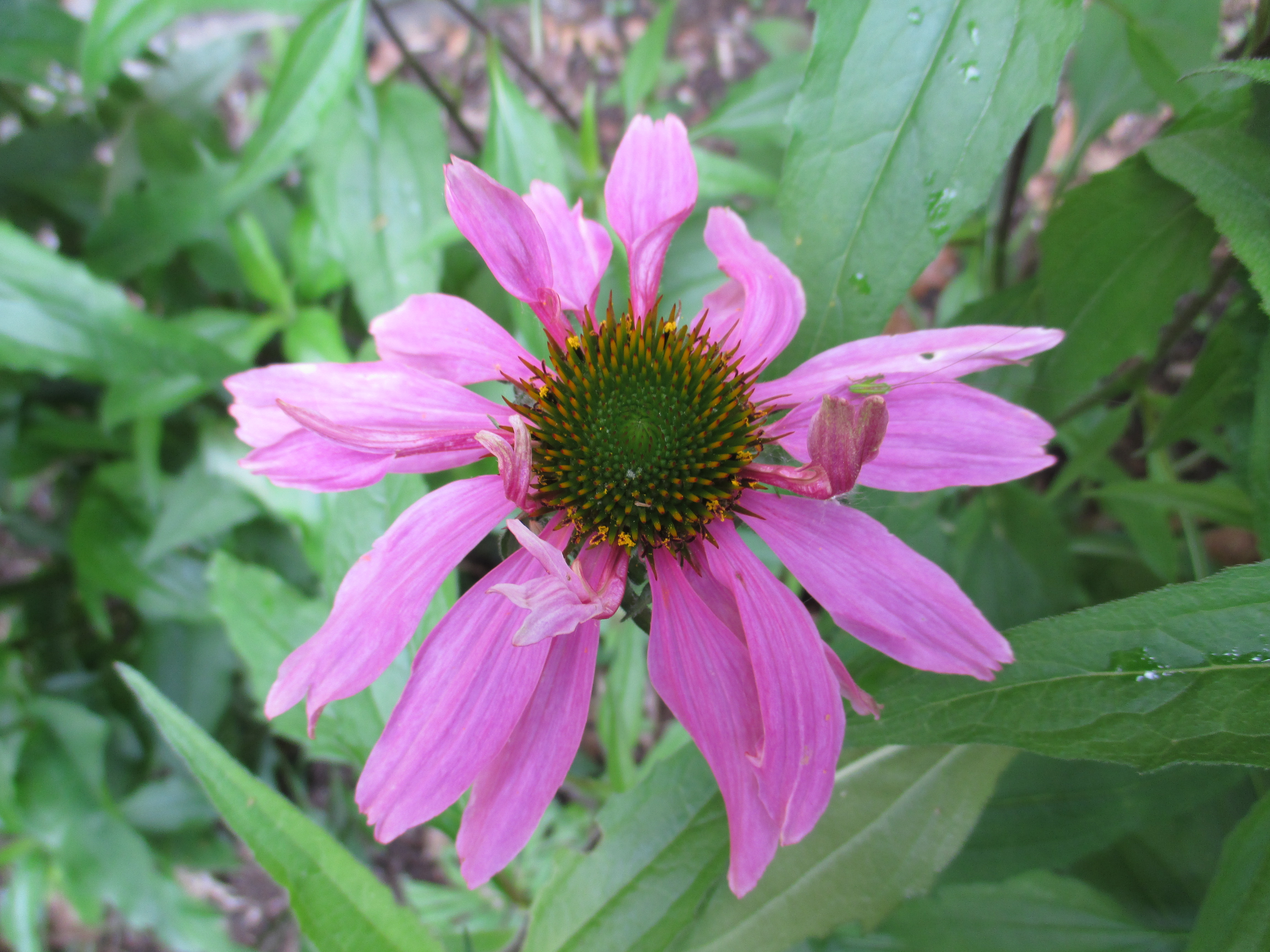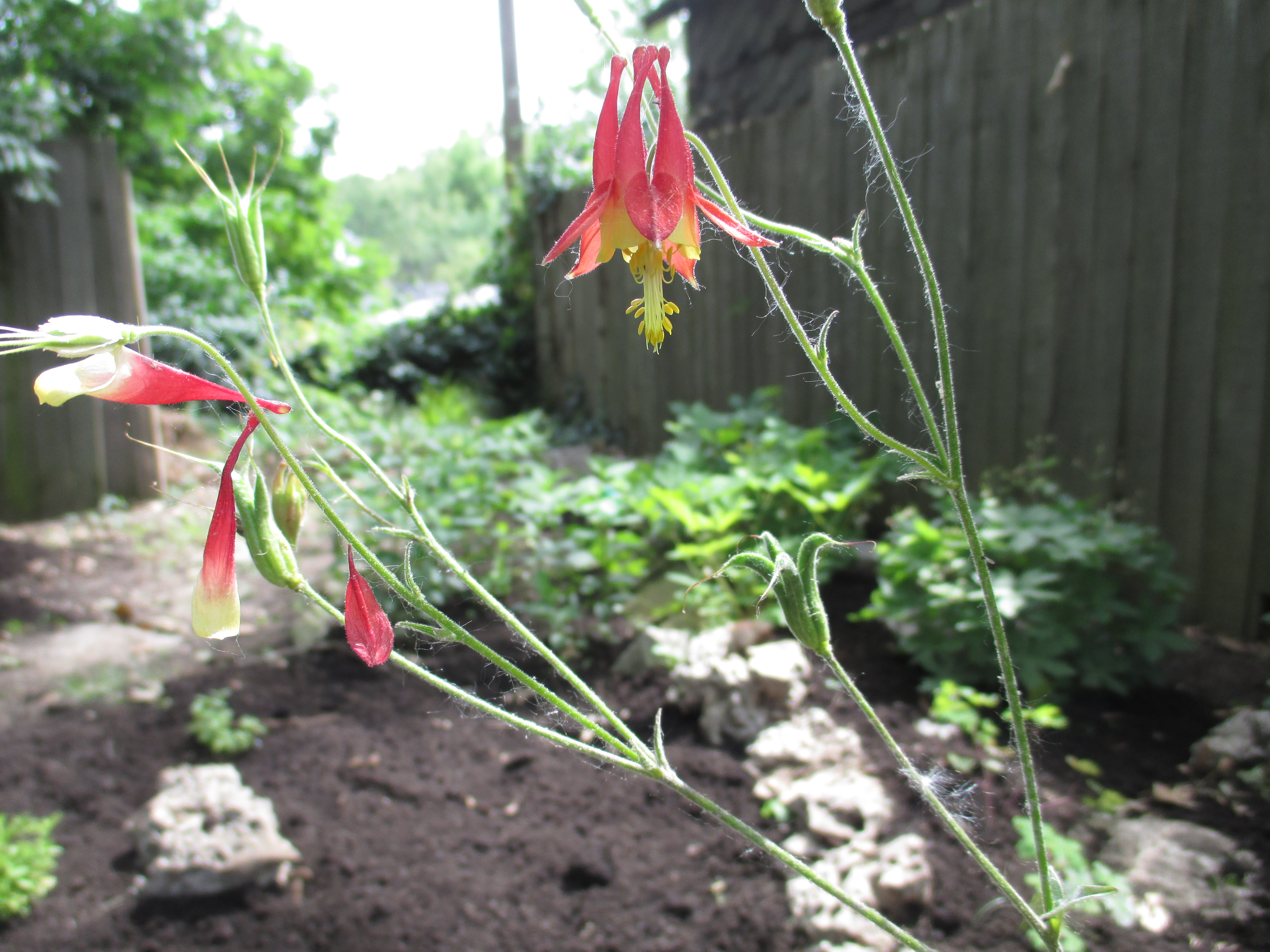 We dug and planted today. Last week I dug and planted in the rain and the mud, brought back childhood memories of loving to get dirty. Local news: there is a Mississippi Kite nesting in a sycamore one street over. I saw her this morning from the back porch and put the glasses on the tree and sure enough there are nestlings there. Pretty big, too, getting ready to fly. Last Saturday as I was digging out back I noticed three wrens, one on the table, one on the porch rail, one on the fence, chattering with each other. I suspect that a wren family has been raised in the little wren house that is suspended from a tree in back. I love their song. Hummingbirds have been coming to our yard too, you have to look quick to see them they move so fast. Our work today- we put about 2 yards of leaf mold on the truck before breakfast, went to get some plants, dug, planted, spread all that leaf mold- reminds me of the old days when we did this for a living. I’d need to work up to a daily diet of this slowly now, though- makes me pleasantly sore and tired. What a lovely spring it has been.