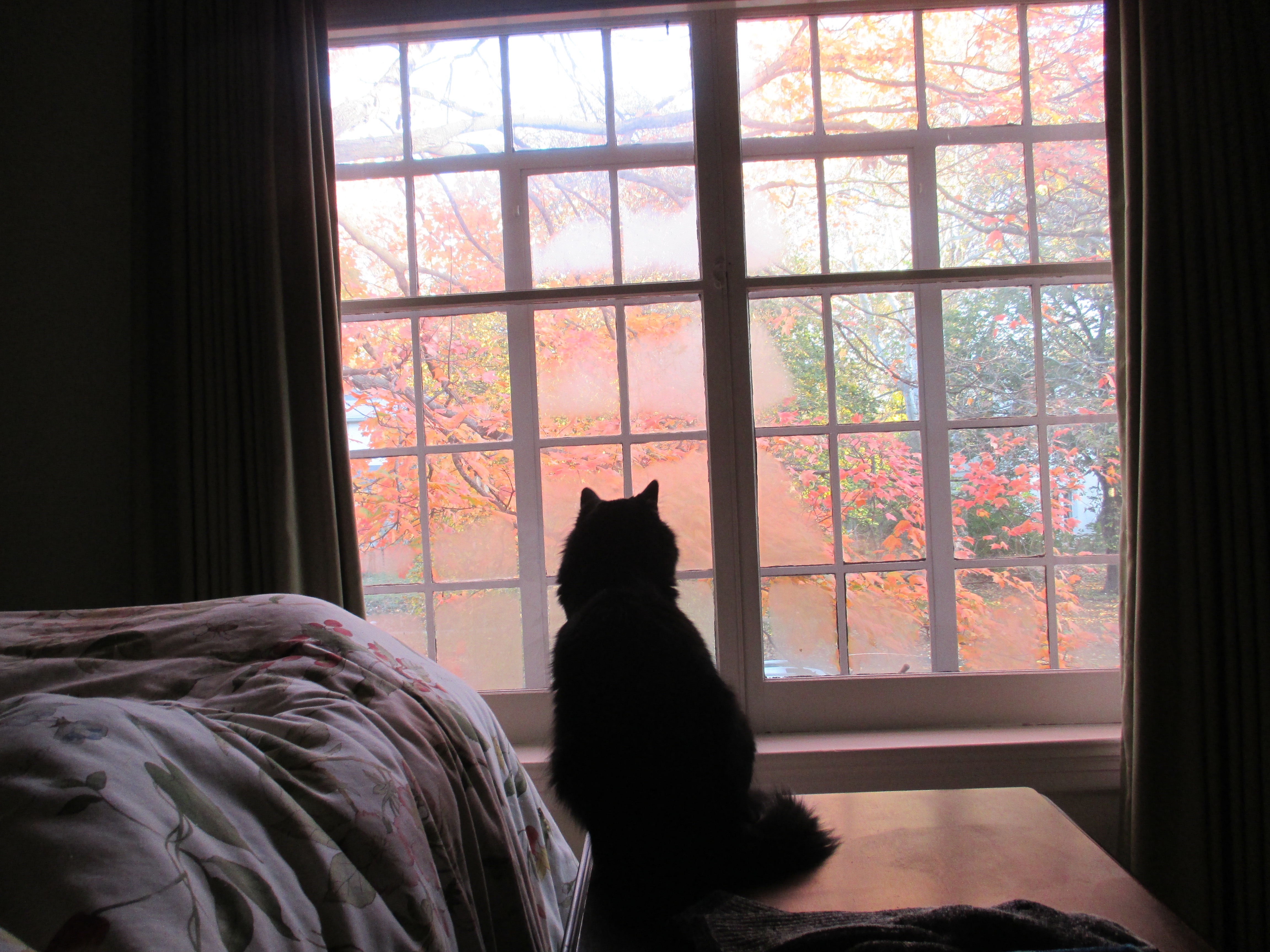 Frost was on the roof this morning. A spider between the inside and outside windows tried to find some purchase, I could trace her path in the condensation on the window.