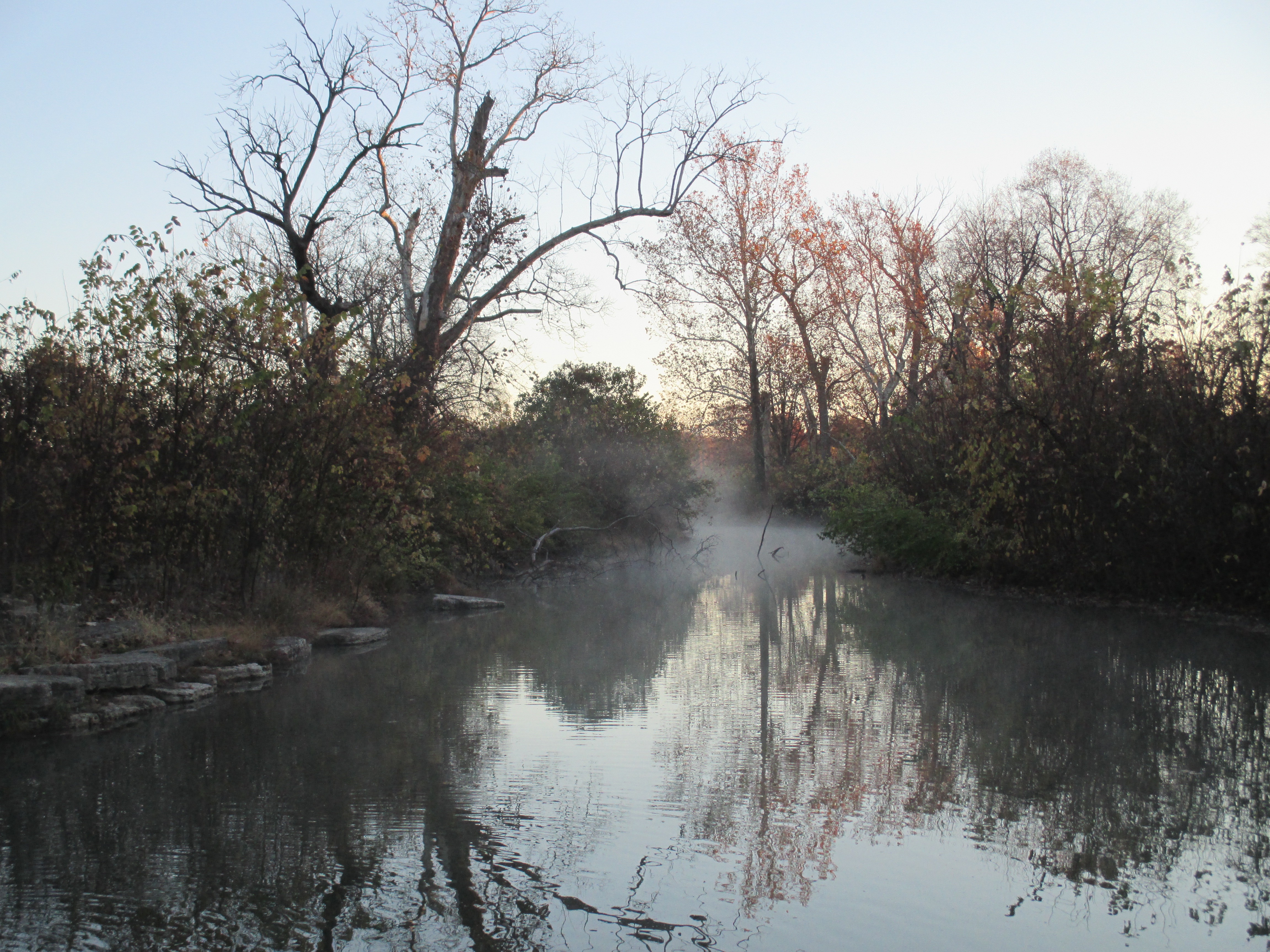 This morning I stopped in the park for a respite from the awfulness. Frost on the ground, mist rising from the river, I even heard a red winged blackbird, still here for some reason. Sanity, if only for a moment.