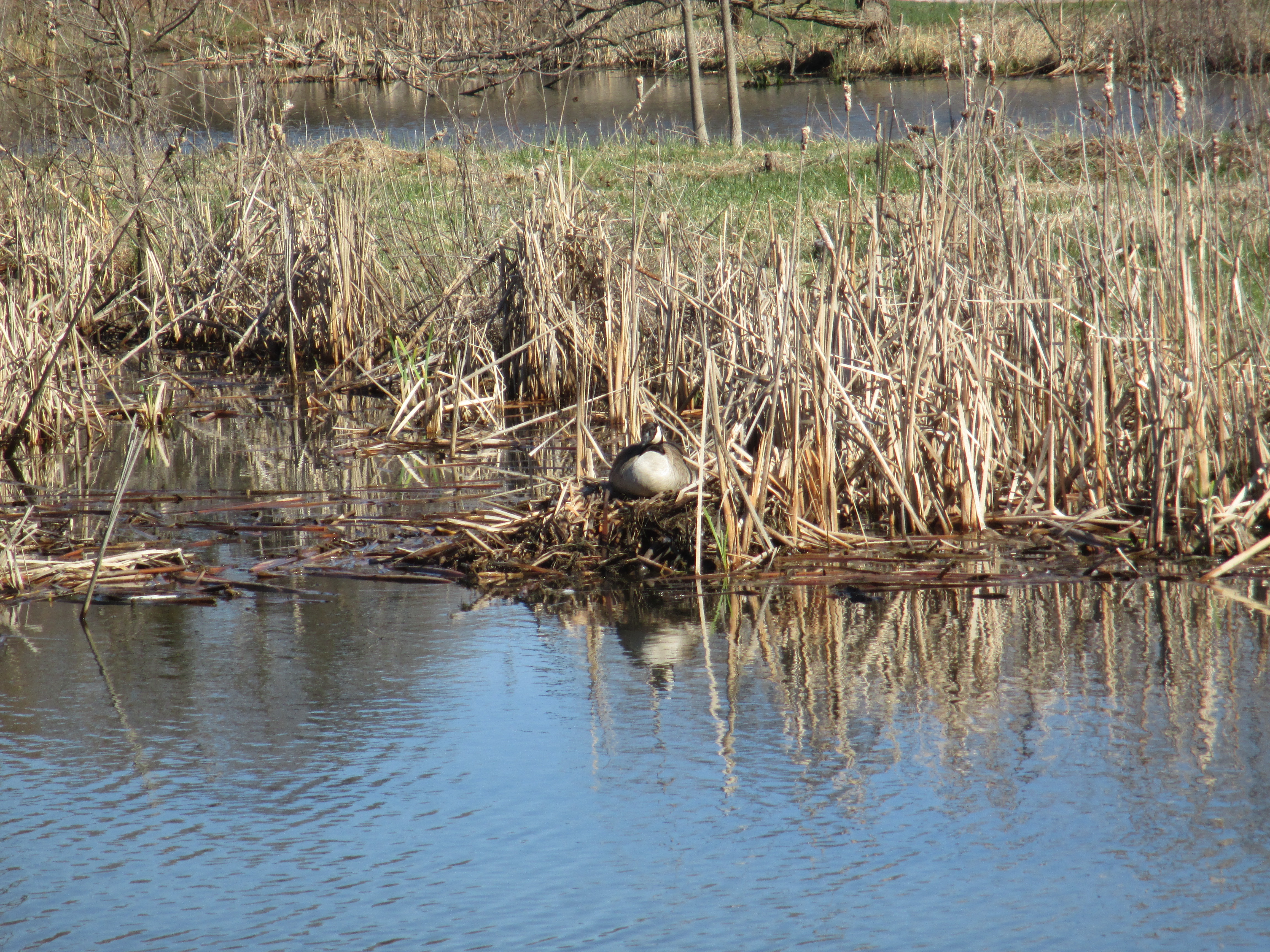 Goose on nest, the night after a huge rain. The edge of the island the nest is on was covered by water, but the nest was high enough to escape. A nest onn the other end of the island was not so fortunate.